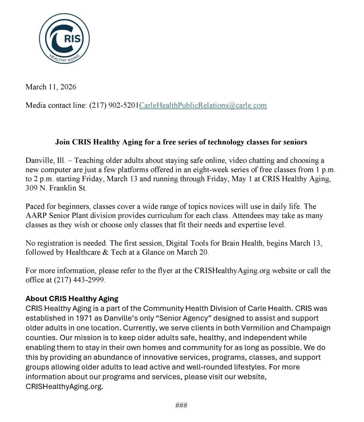 Welcome to CRIS Healthy Aging of Vermilion and Champaign County