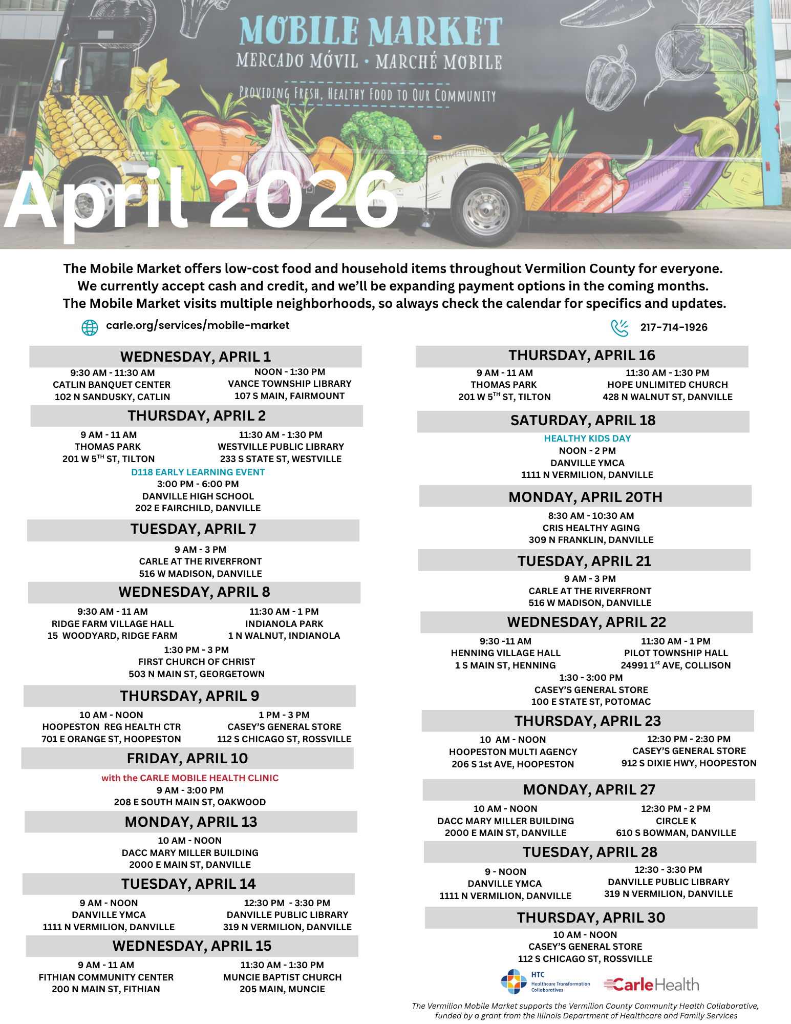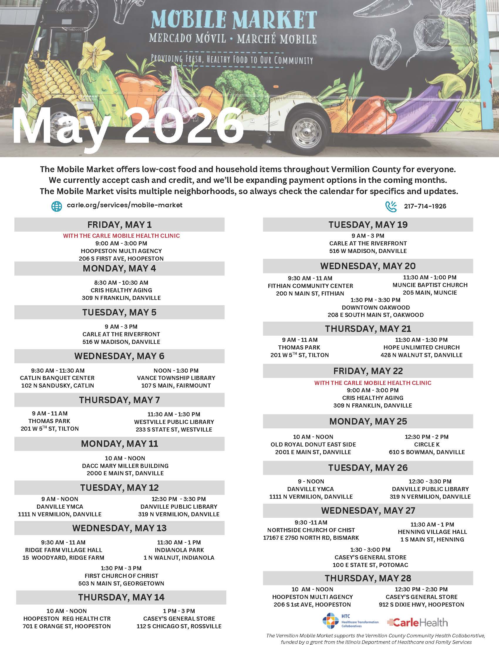Our main funding sources are the East Central Illinois Area on Aging, the United Way of Danville, and Private Contributions. Thank you!